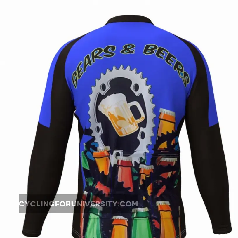Gears & Beers Men's Long Sleeve Cycling Jersey Blue