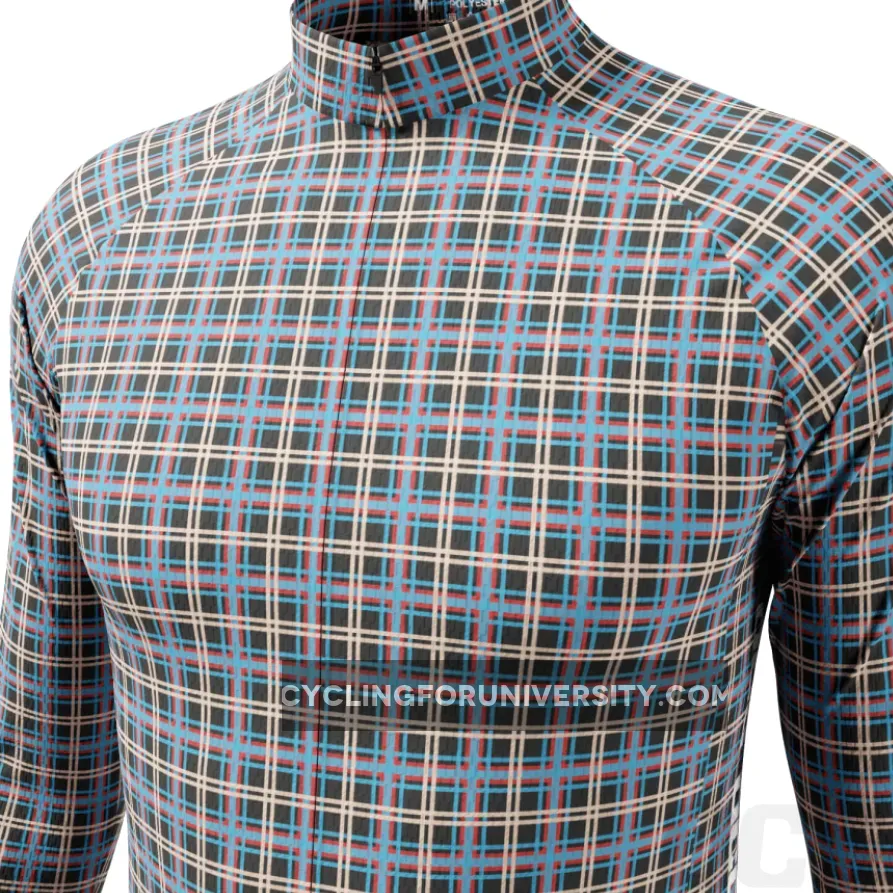 Men’s Blue Plaid Checkered Long Sleeve Cycling Jersey Details