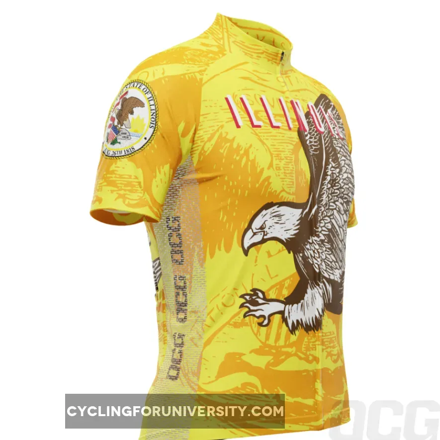 Men's Illinois Flag USA State Short Sleeve Cycling Jersey Illinois Bike Jersey