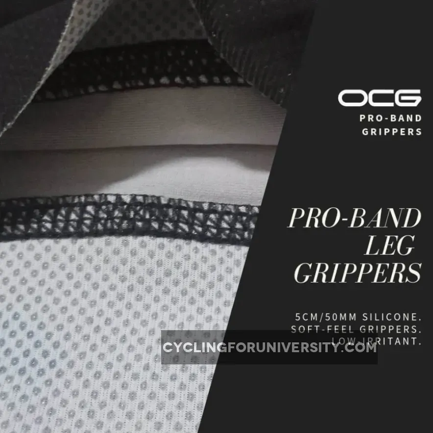 • Grippers: 45mm silicon Pro-Band leg grippers. Low irritant silicone waist gripper.