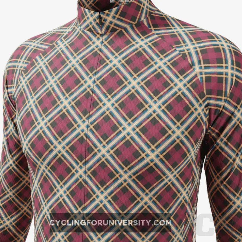 Men’s Red Plaid Checkered Long Sleeve Cycling Jersey Details