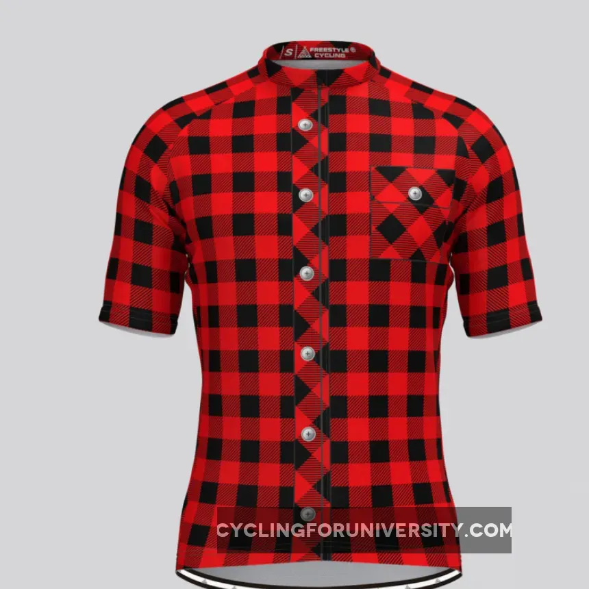 Plaid Checkered Shirt V2 Men's Cycling Kit Red For Sale
