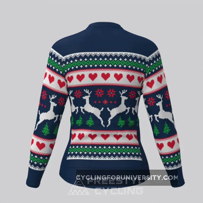 Women's Classic Ugly Christmas sweater LS Cycling Jersey – Navy