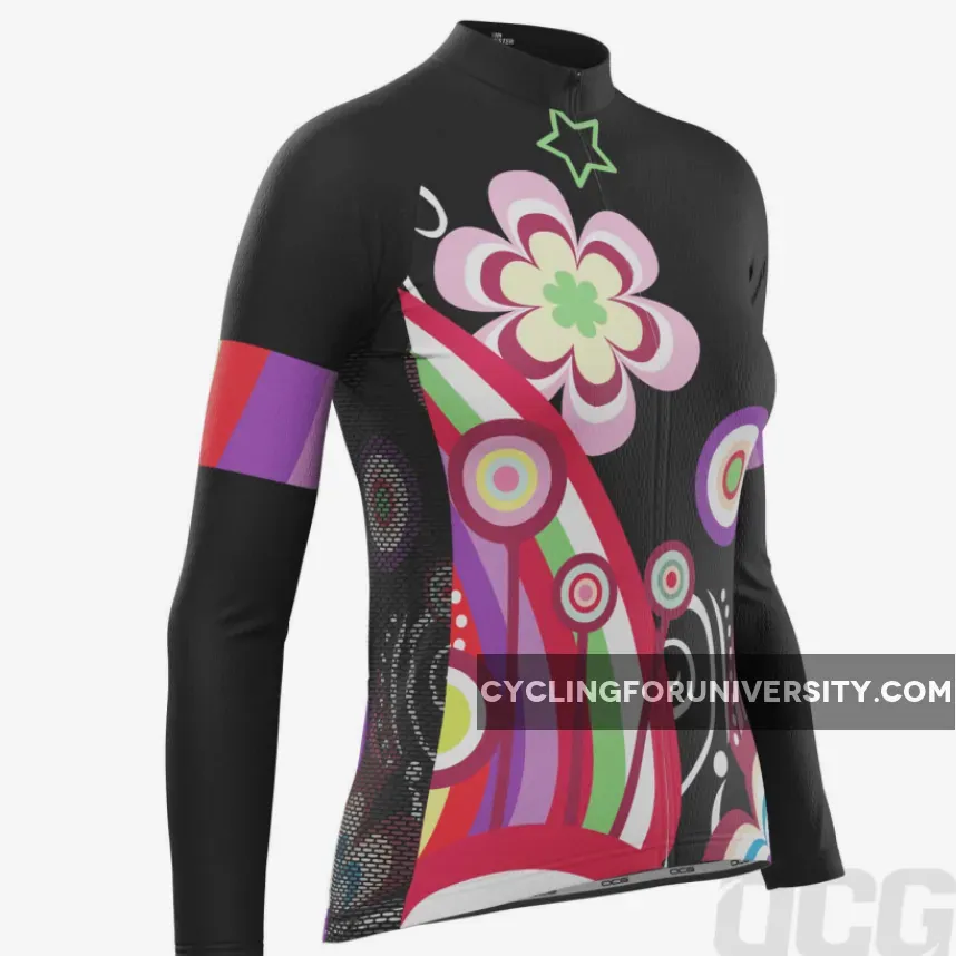 Women's Floral Black Long Sleeve Cycling Jersey Restock