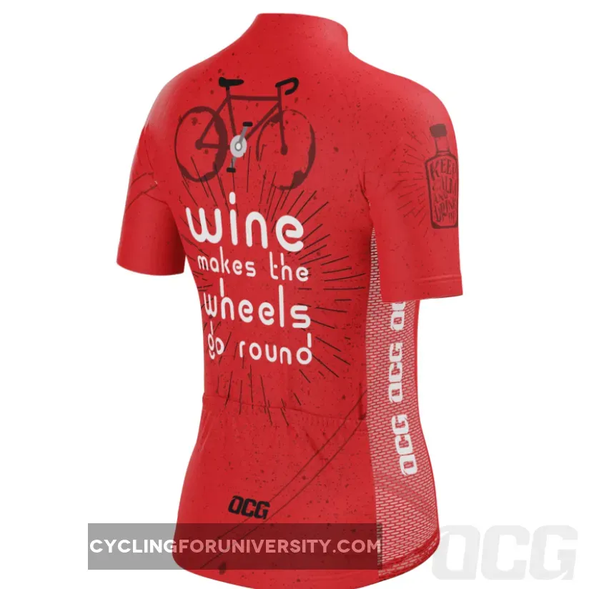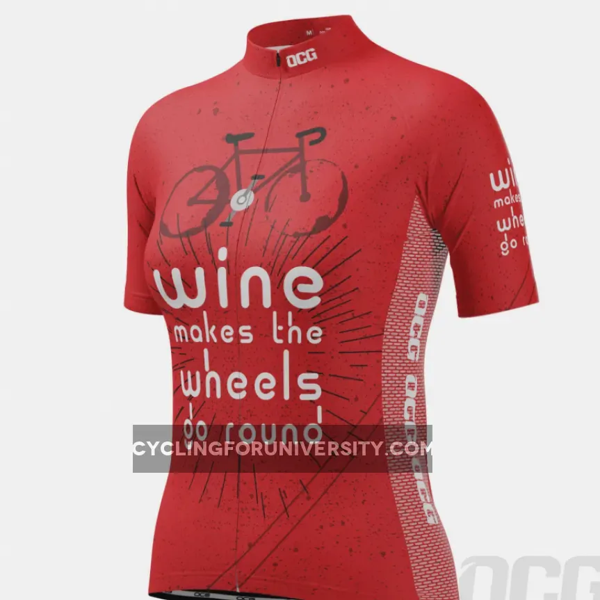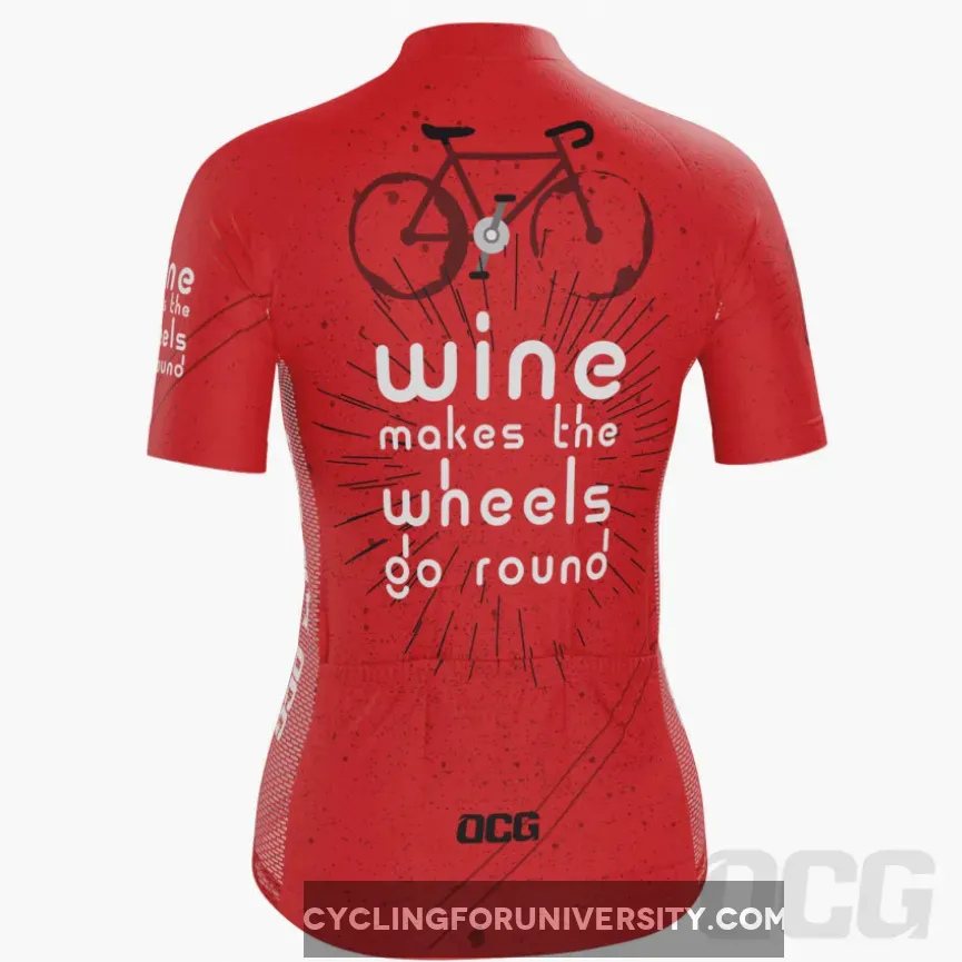 Women’s Wine Makes the Wheels Go Round Short Sleeve Cycling Jersey Details